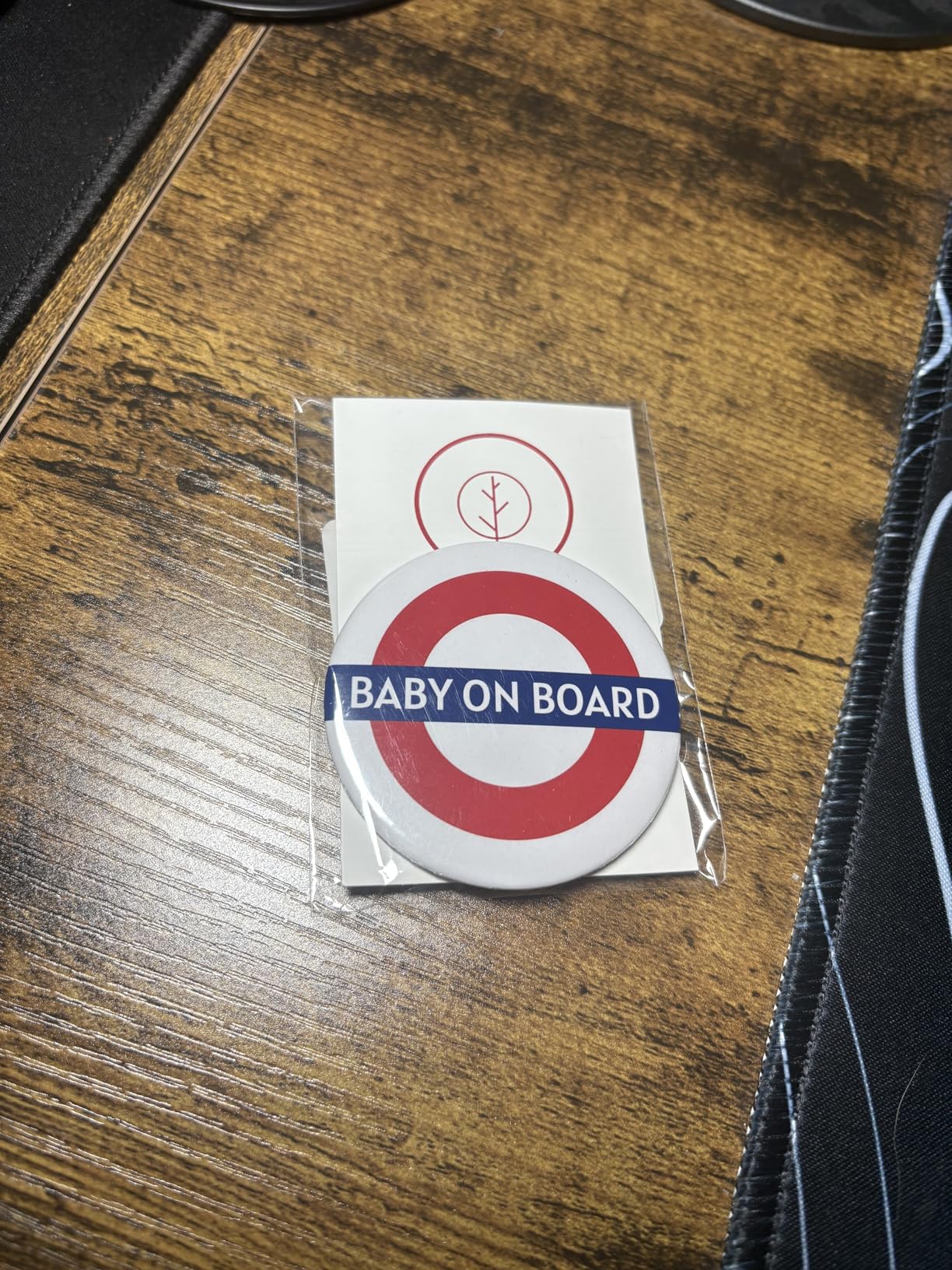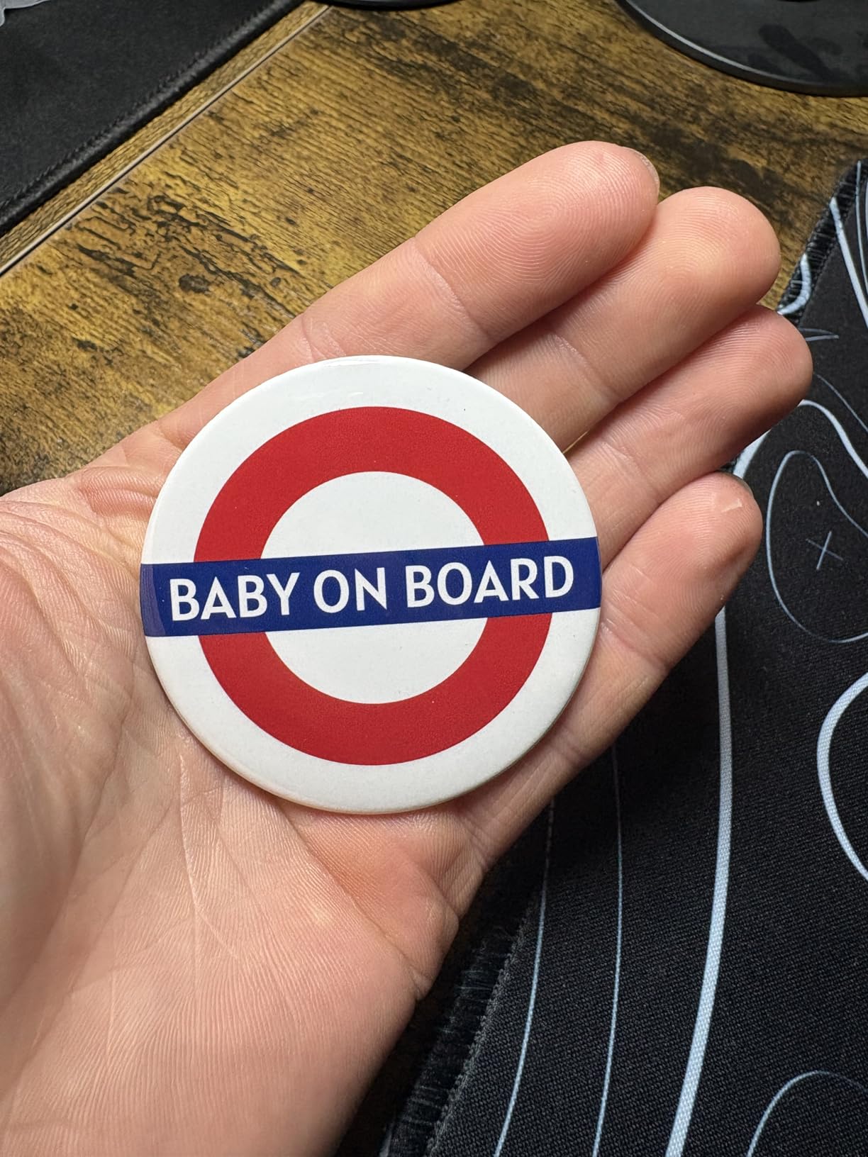 Very nice badge pin that says 'Baby on Board' using the TFL Roundel rather than just the words 'Baby on board' of the original badges. Personally the writing is easier to miss on this badge vs the official one. However it does look more interesting.