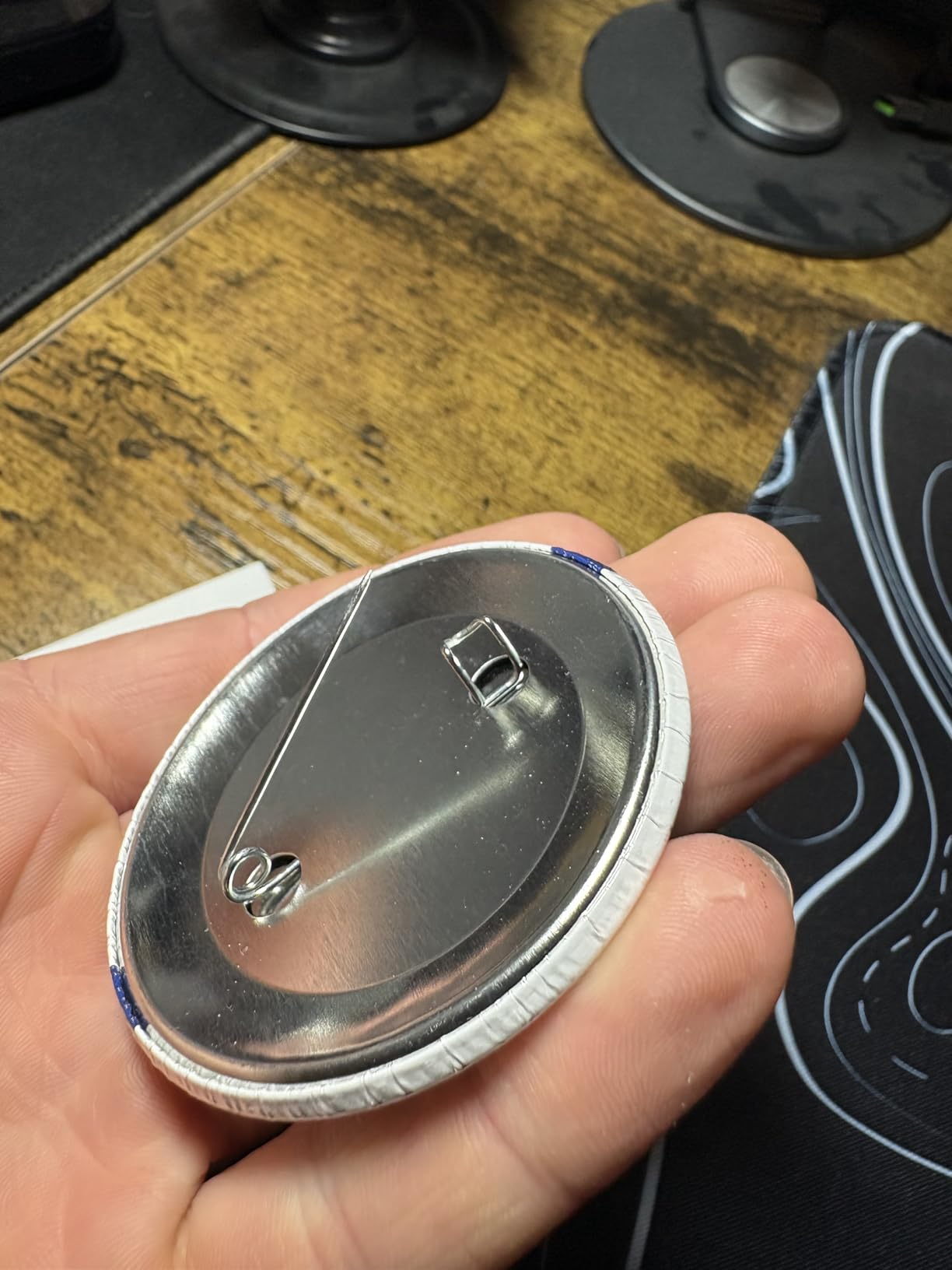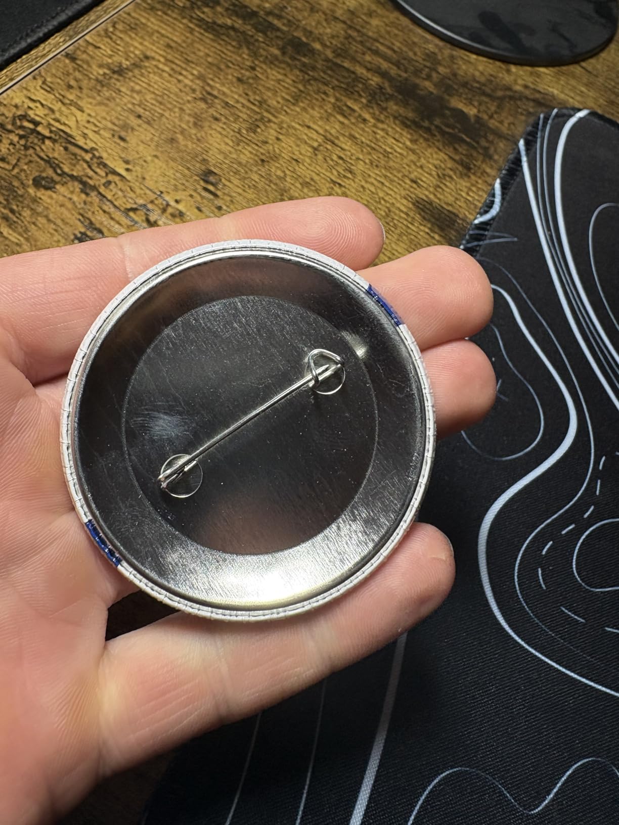 A nice big sized badge that feels well made from the front print to the way the safety pin is latched onto itself.The colours of the print are lovely and bright helping it be seen easily when wearing, that being said it’s super easy to get onto my jacket or top that I’m wearing using the safety pin located on the back.I’m just amazed at the size and quality of it with it being so big, really does stand out on my partners jacket with all her other badges on too.