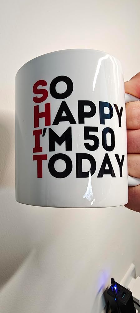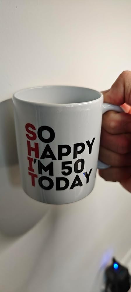 A standard white mug with a humorous take on entering a new decade. Printing is bright and clear. The use of ‘today’ means the mug is already anachronistic the day after the recipient’s birthday, but to be fair I can’t think of an alternative and it doesn’t really matter. A silly gift, decent quality mug, should raise a smile.